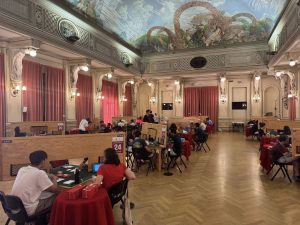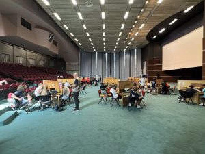Ebbene, alla fine dell’incontro Under 26 tra Svezia e Polonia il punteggio era pari, e dato che a livello EBL e WBF non esistono più i board di spareggio (dal 2017), il risultato era da determinarsi a favore della formazione che era arrivata davanti nel Round Robin. Polonia, dunque. Finita? No, perché la Svezia ha proposto un reclamo su una mano dell’ultimo turno, e lo ha fatto alle 20.05, nel caldo soffocante della sera di Salso, e con un’umidità davvero impressionante che si andava addensando sulla cittadina (né si poteva cercare refrigerio all’interno del Palazzo dei Congressi: vi ho già spiegato come il condizionamento sia a dir poco errabondo).